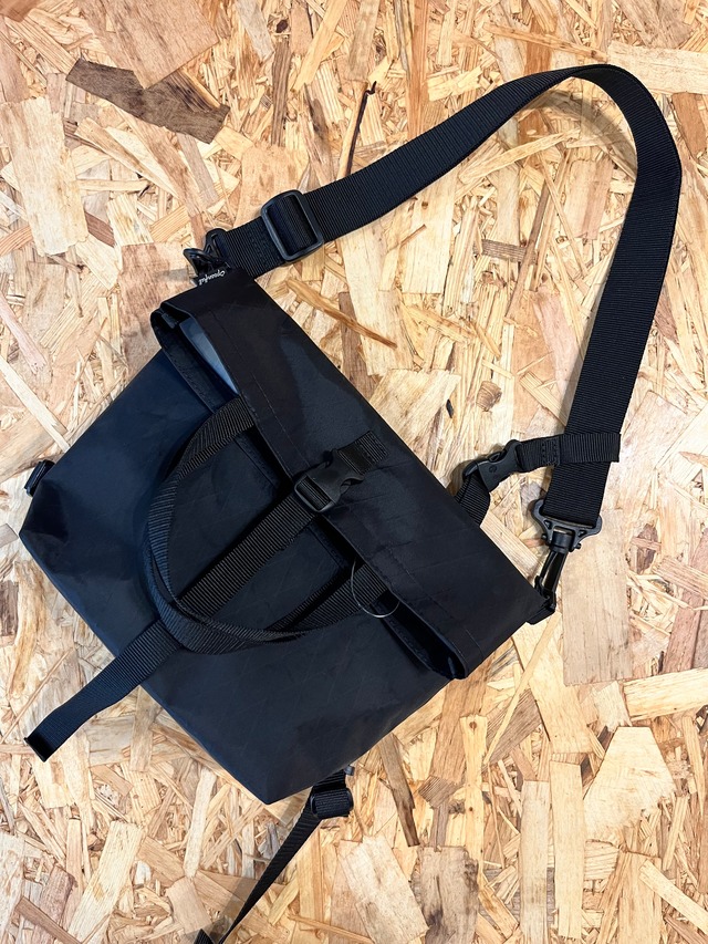 価格: ¥5,900(+tax) カラー: BLACK サイズ: 幅12×高さ18×奥行き4cm 重量:135g 容量:約1.0L 材質: 1000D 100%リサイクルナイロン、420D 100%リサイクルナイロン、210D 100%リサイクルナイロンライナー ちょっとした散歩やサブバッグにオススメなサイズ感です。 紐は取り外し可能なのでポーチとしてメインバッグに忍ばせておくのも◯ フェスやアウトドアにもピッタリです。