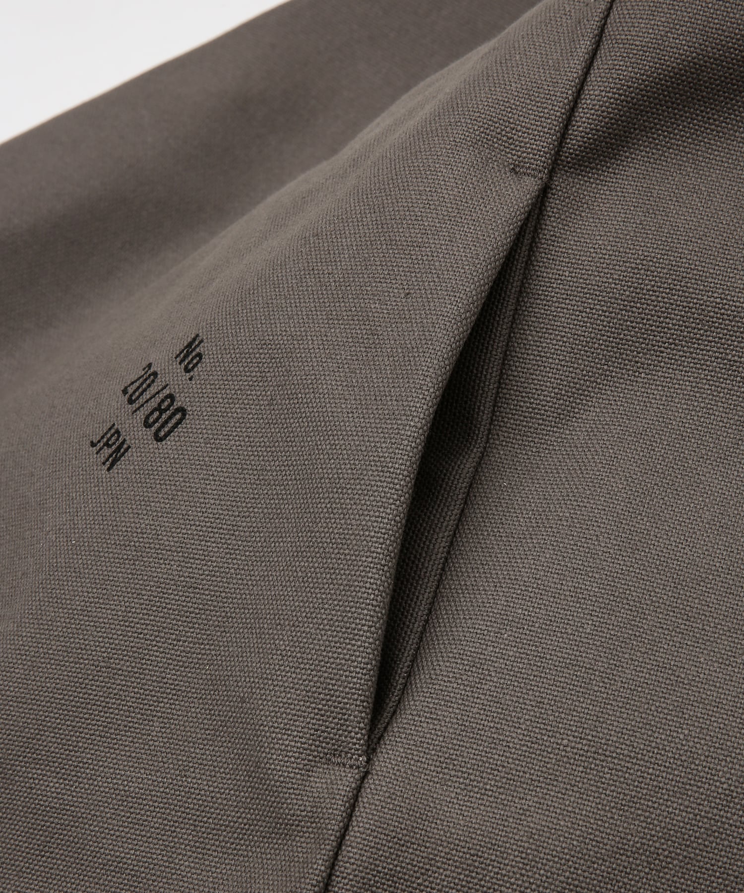 日本古来の包む文化から、風呂敷を縫い合わせて鞄代わりにしたのがあずま袋の始まりと言われています。理に適ったシンプルな構造で、折り紙のようにたたみながら縫い合わすことで出来ていきます。肩がけがメインの持ち方になりますが、斜めがけもギリギリ可能です。フロントには切り替えに沿ってスラッシュポケットを設け、背面にはヌメ革のレザーパッチが付属。口元はテープで結べるようにもなっています。