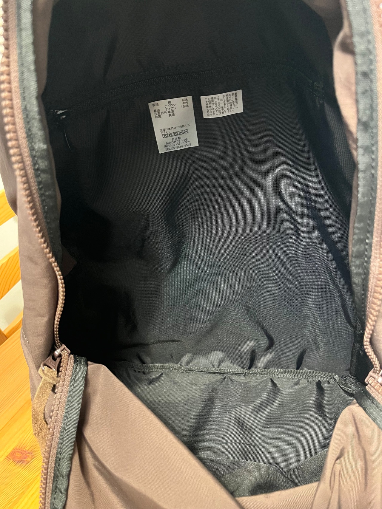 真鍮のカラビナがアクセントのデイパック。