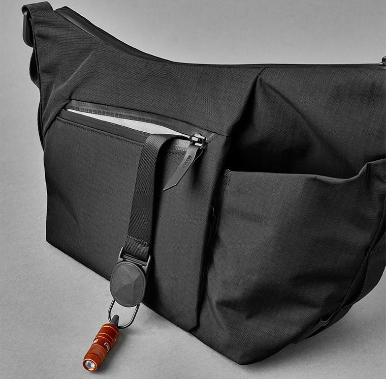 撥水性が高いナイロン生地と止水ファスナーで雨の日でも安心してガジェットの持ち運びが可能。