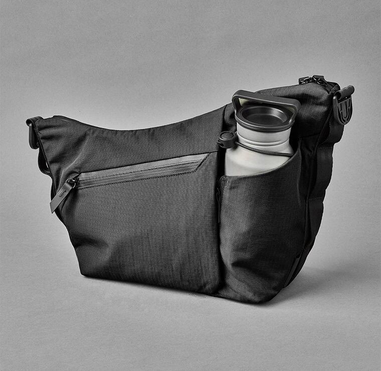 撥水性が高いナイロン生地と止水ファスナーで雨の日でも安心してガジェットの持ち運びが可能。