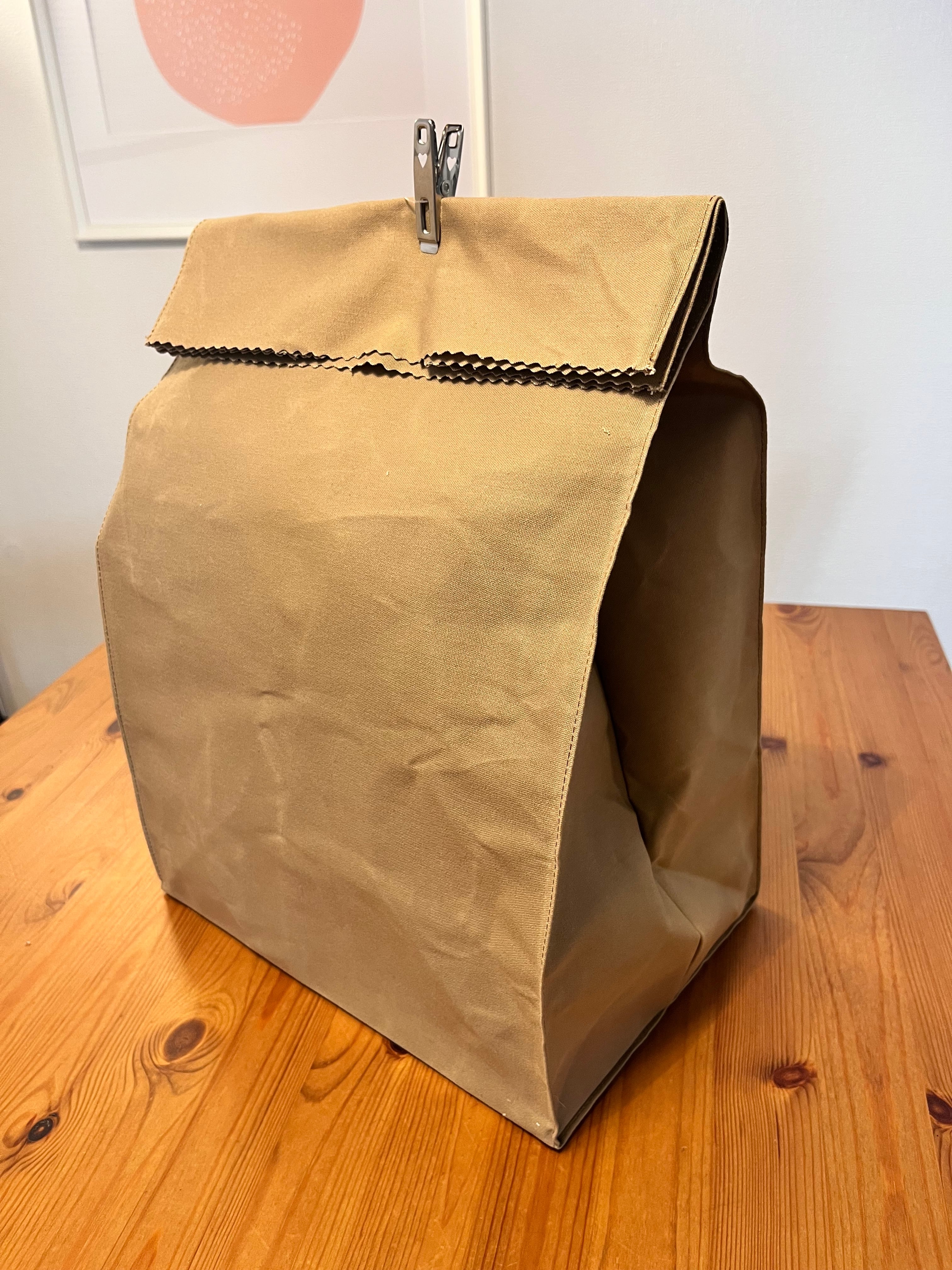 パラフィンコットンキャンバスを使用することで、使う毎にあじが出てくる仕様になってます。(パラフィン加工が落ちてしまうので丸洗いは避け汚れた際は濡れた布巾で拭いてください)