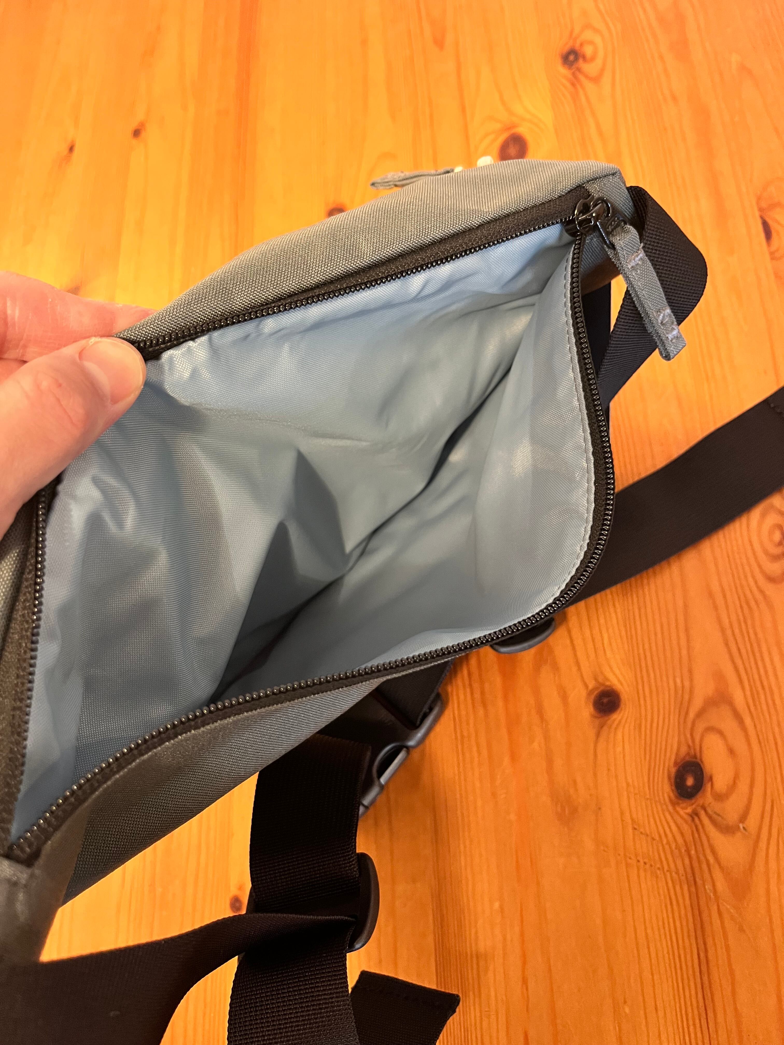 ペットボトルや折りたたみ傘が入るボディバッグ。 ベーシックな形で年齢服装問わず合わせやすいデザインです。