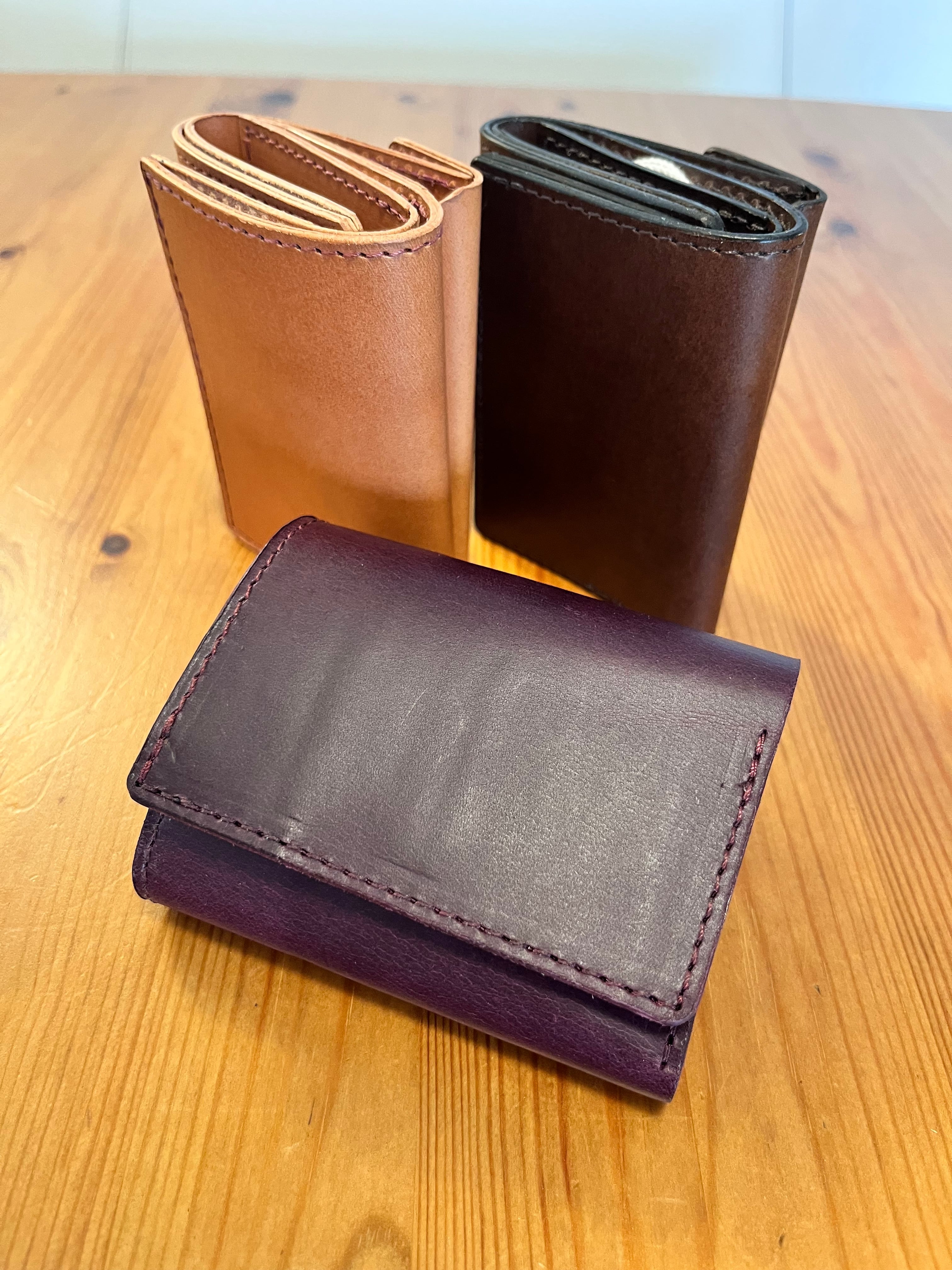 札入れ、小銭入れ(外側独立)、カード入れ(内側縦横計5枚)の小型サイズ。