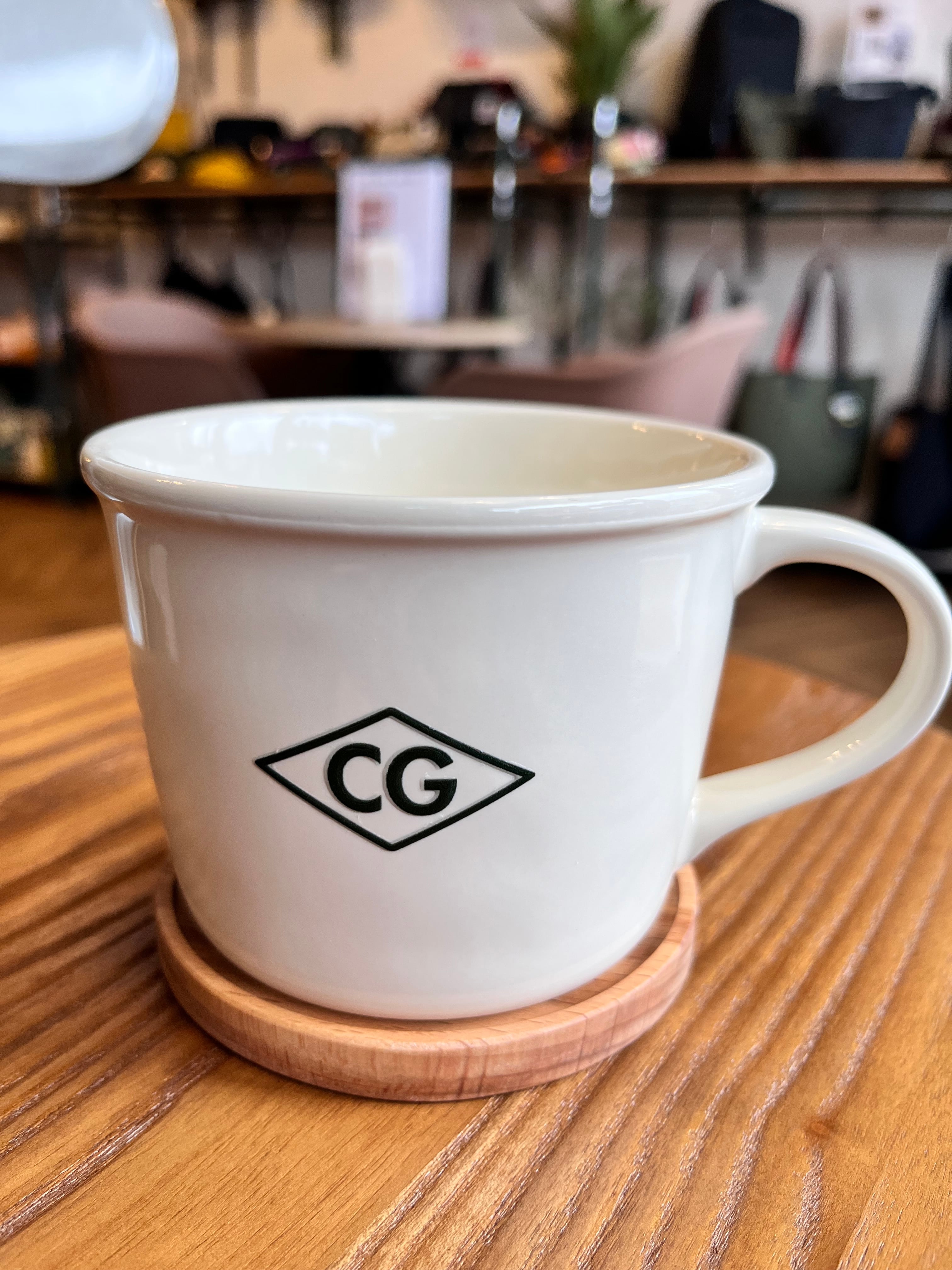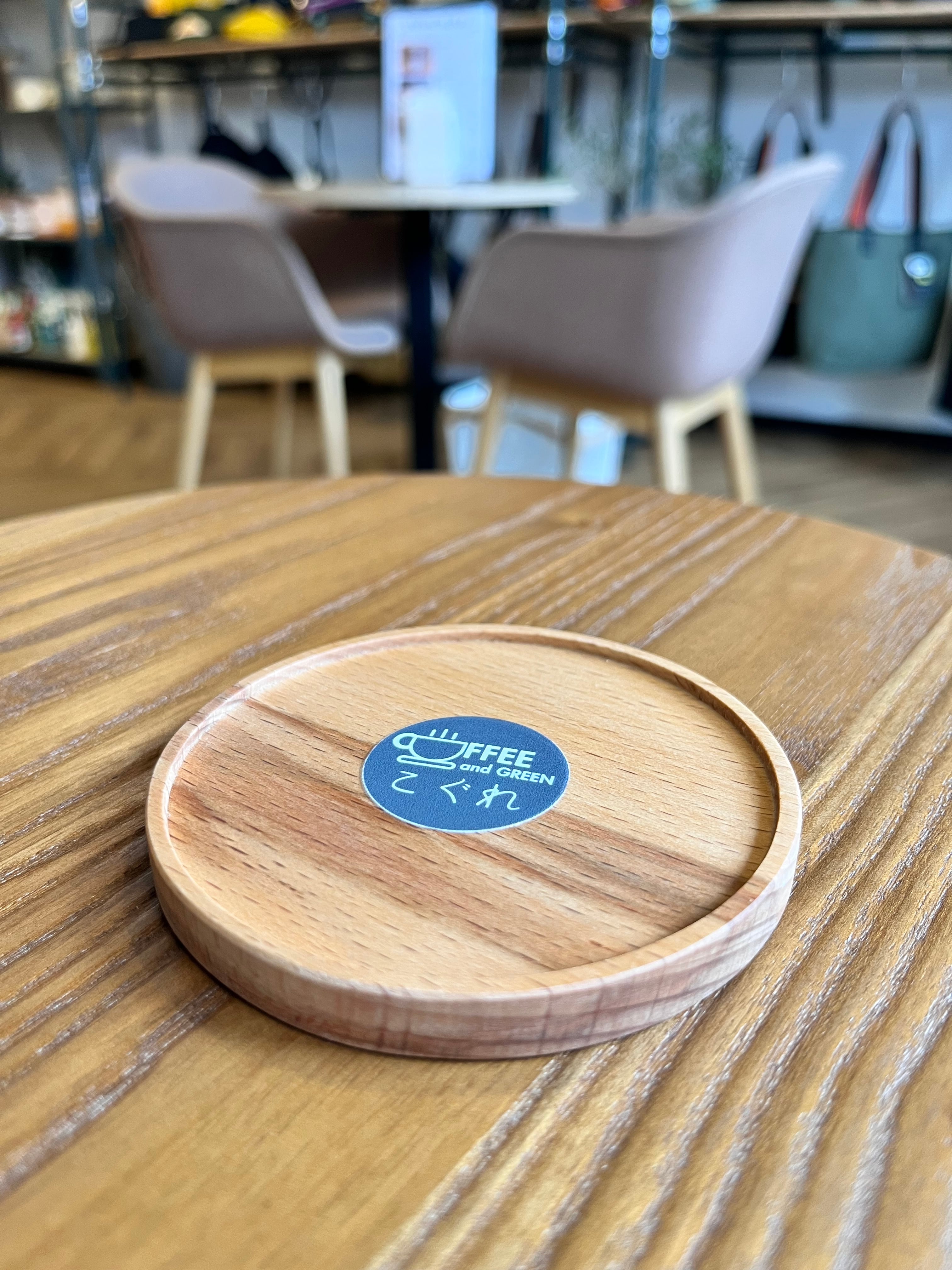 こぐれ店舗ロゴがワンポイントの木製コースター。