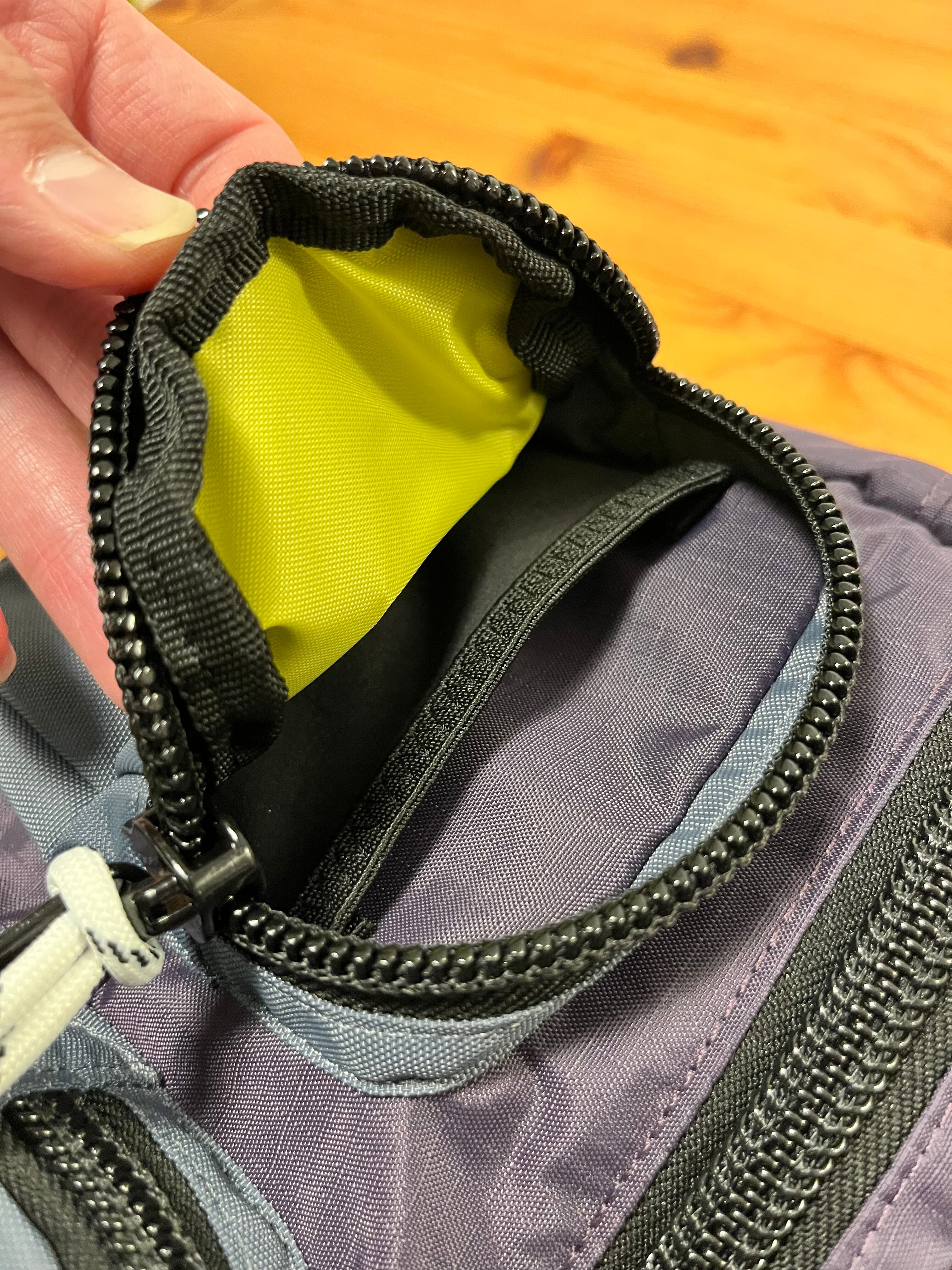 前面2つの独立したポケット、さらにその後ろに大きめポケットがあり小物も収納しやすく、ナイロンで軽く旅行やアウトドアにも相性抜群です。